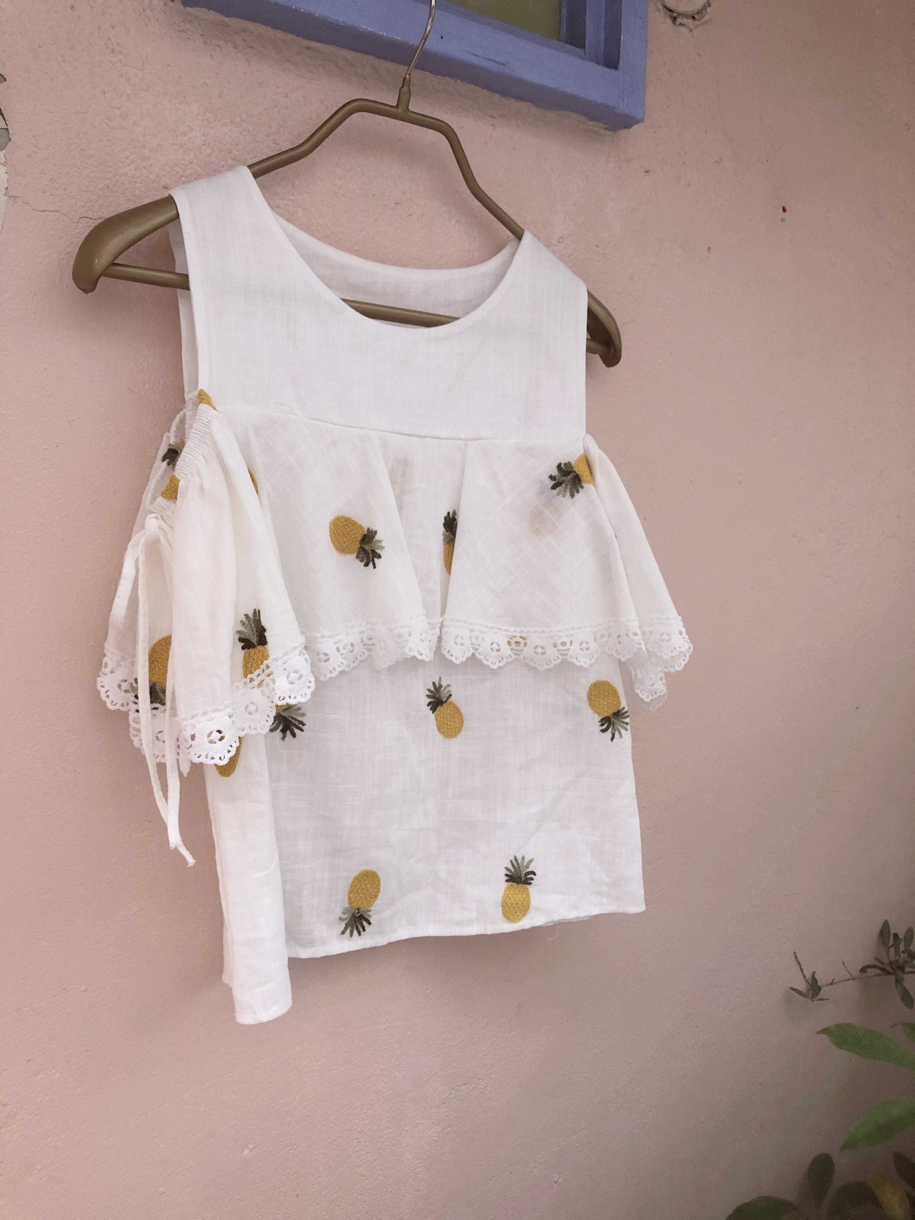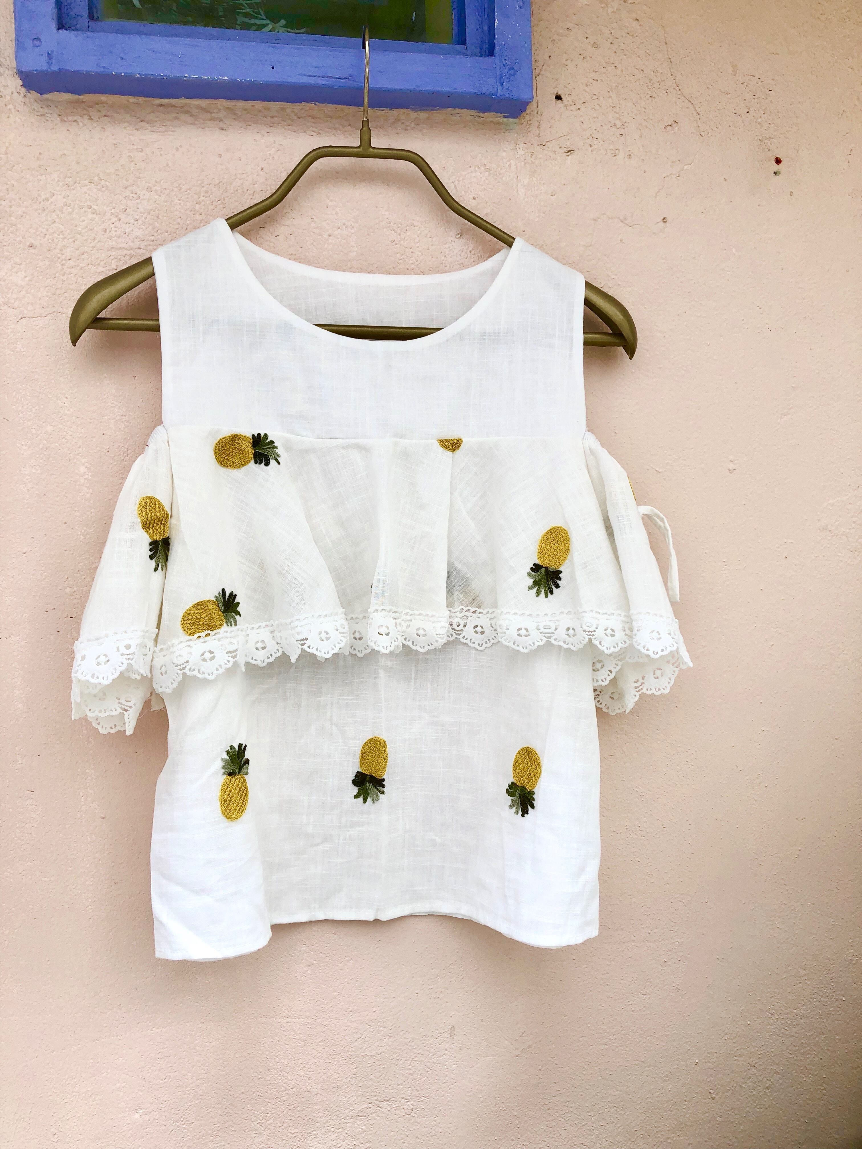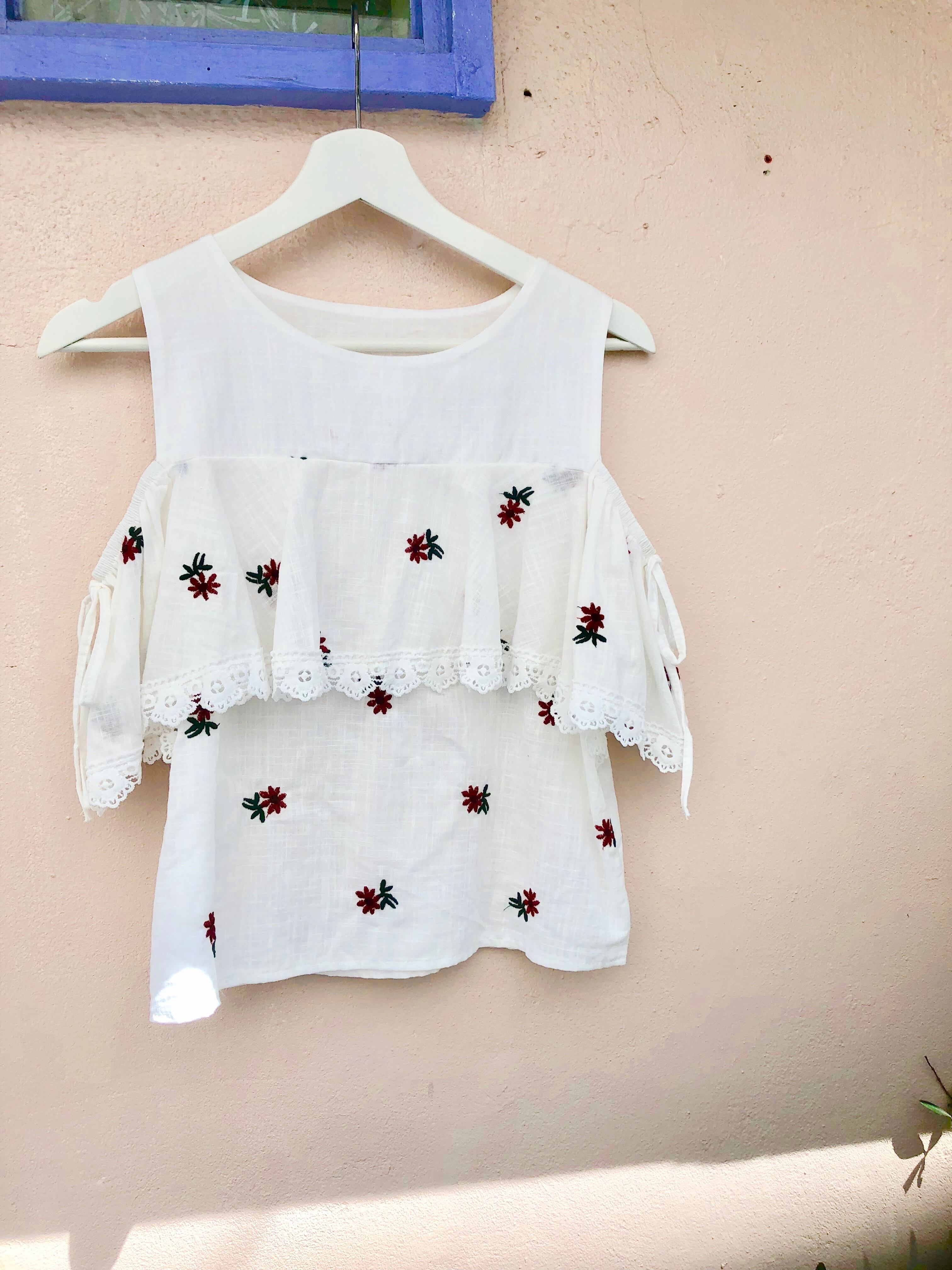 コットン刺繍肩あきトップス