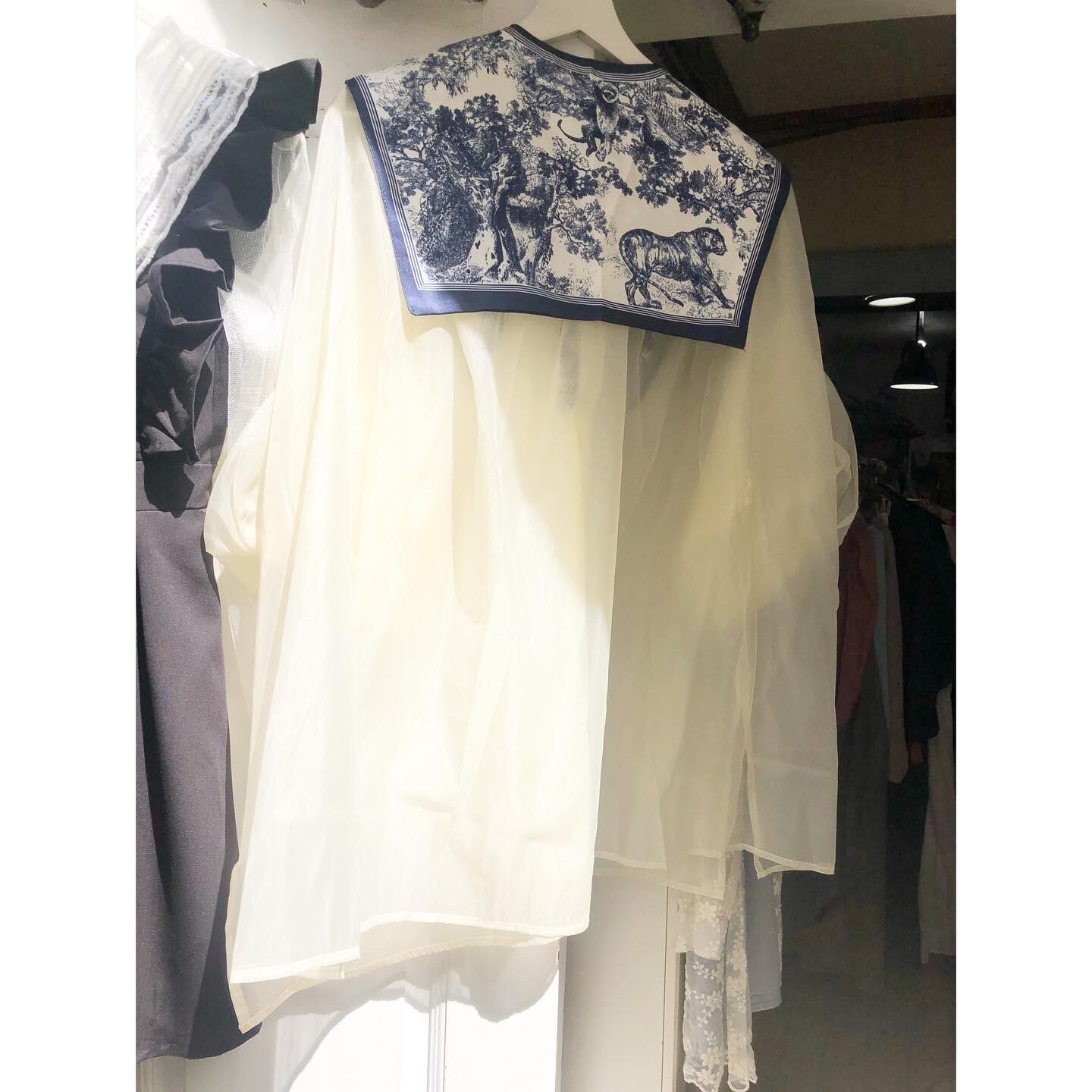 青絵画柄付け襟