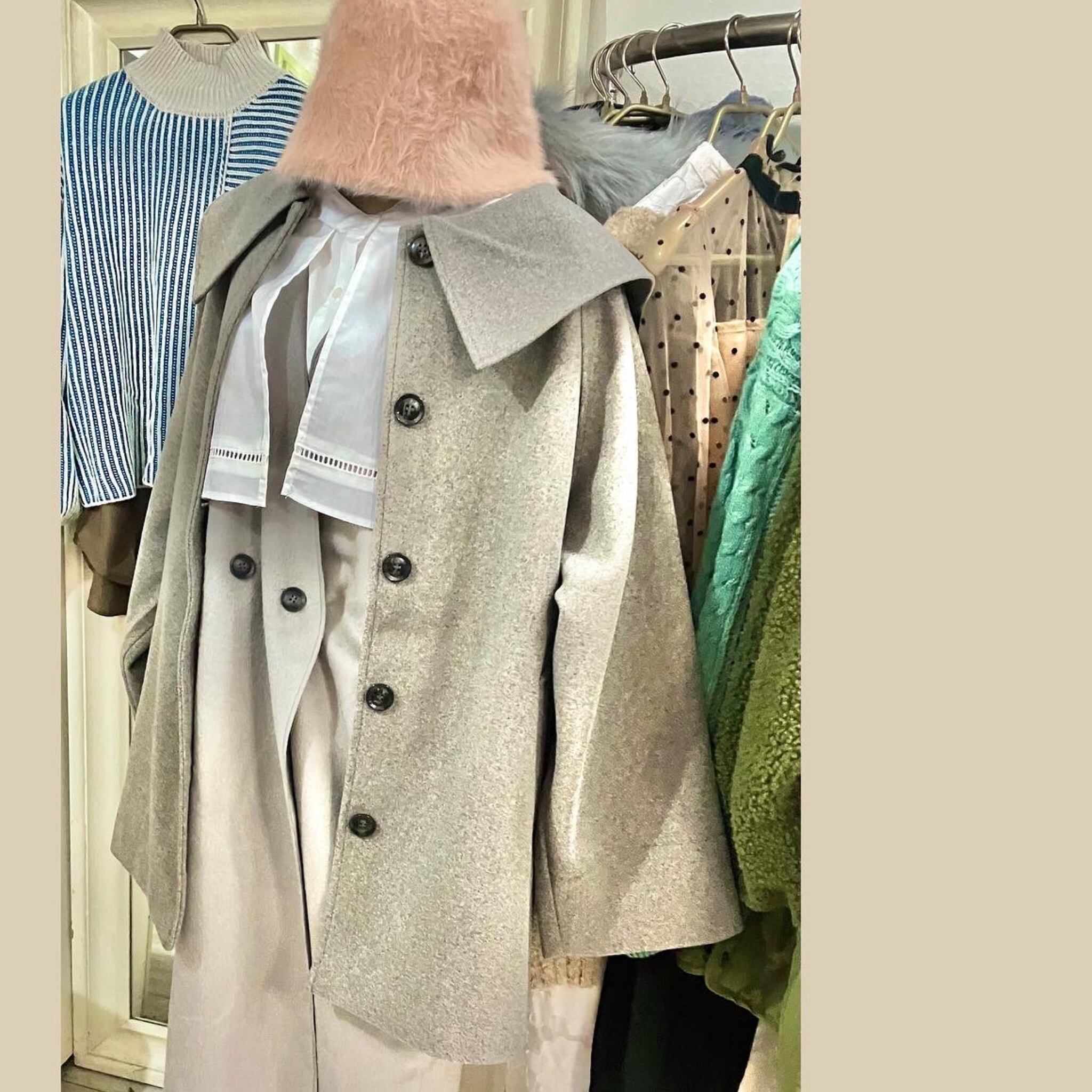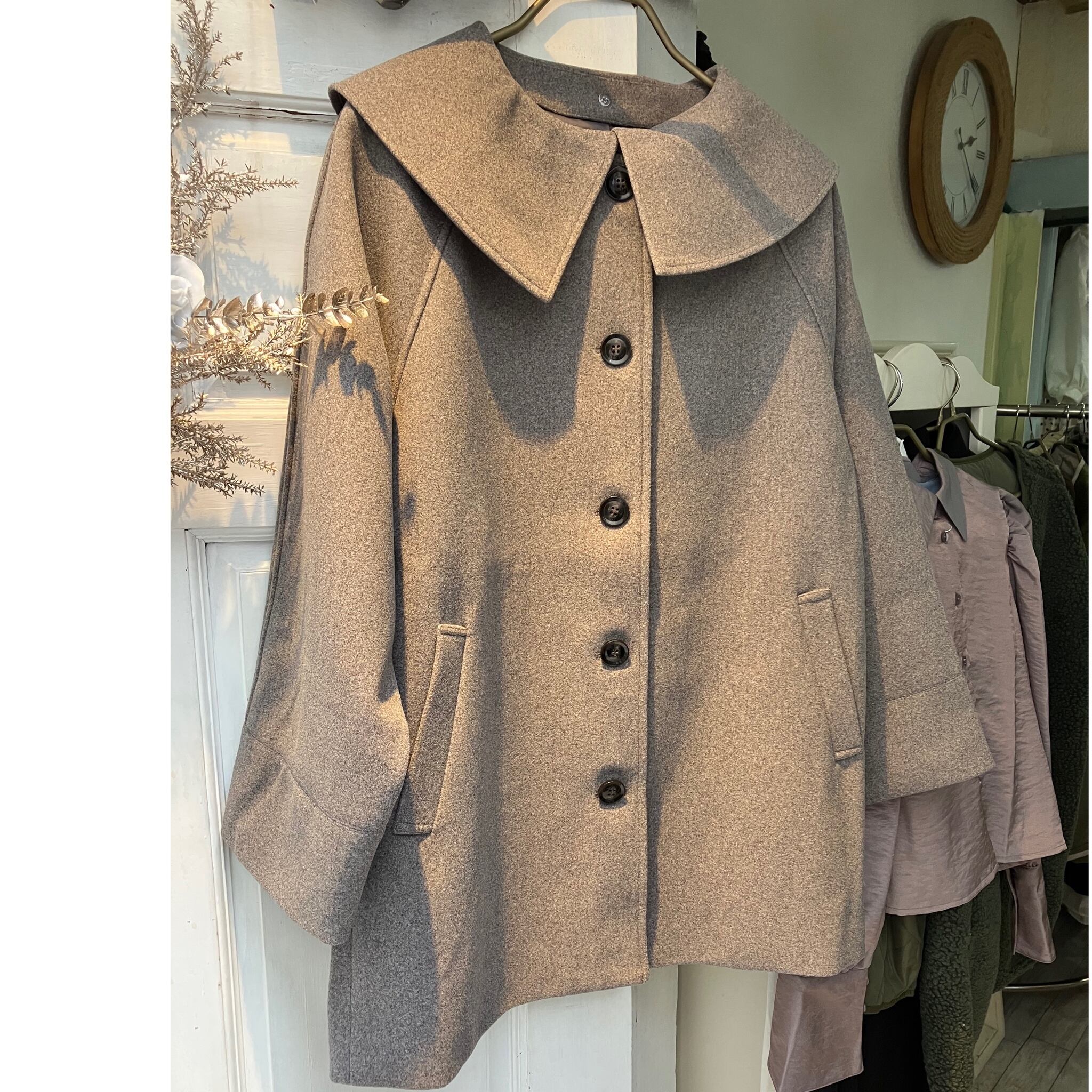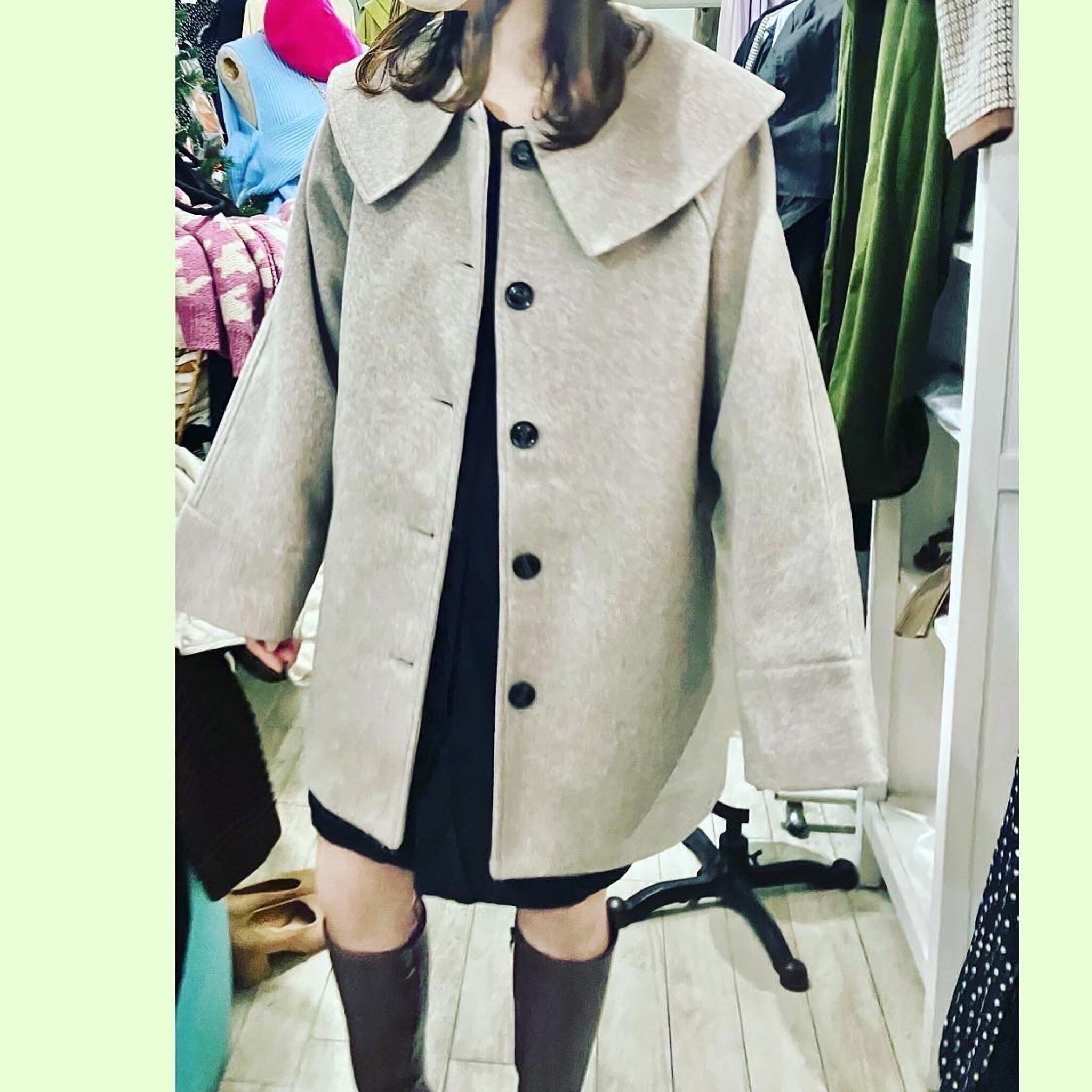 (襟とり外し可能)襟大き目コート
