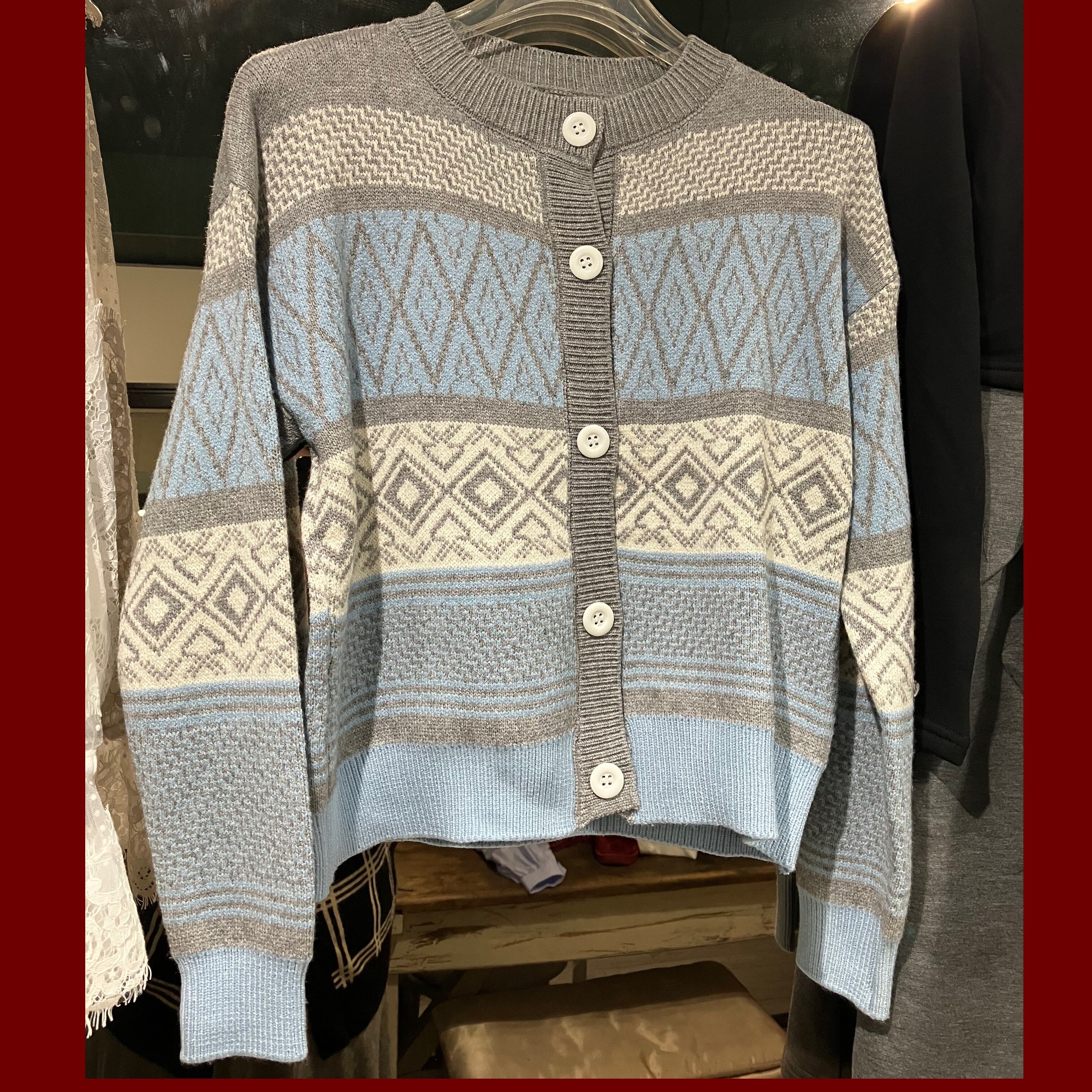 new 柄ニットカーディガン水色