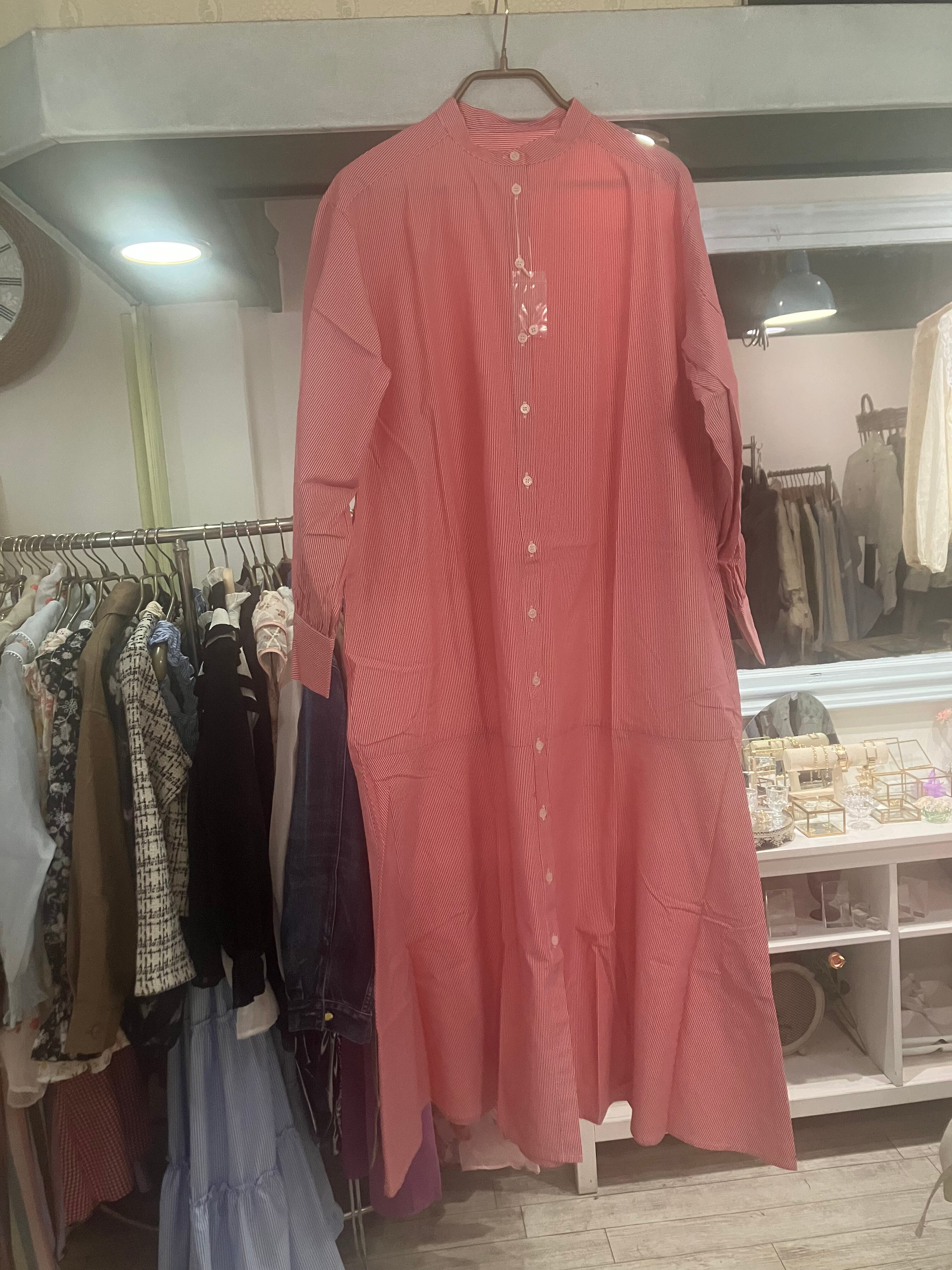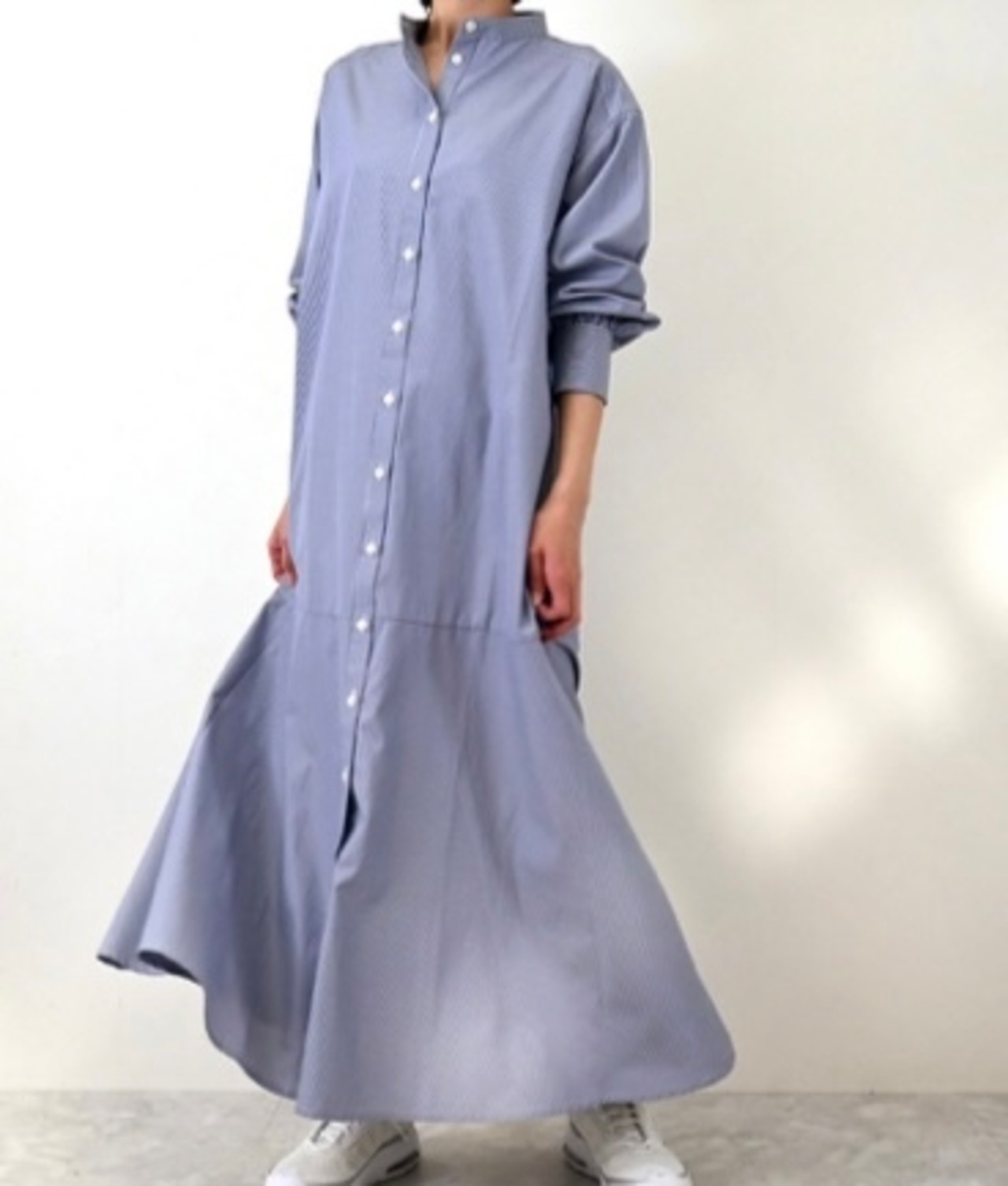 このストライプロングシャツワンピースは、袖が膨らんだノーカラーのデザインが特徴。おしゃれでありながら、シワになりにくい素材を使用しているので、いつでもきれいな印象をキープできます。さらっと着るだけで、リラックスした雰囲気と洗練されたスタイルを実現します!